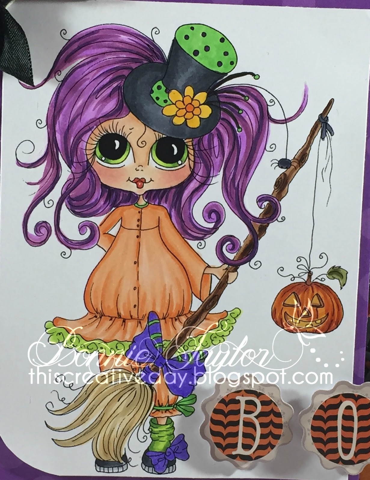 The Copics I used are: R56, R59, V04, V06, Y26 & Y28. The image is printed on x-press paper.